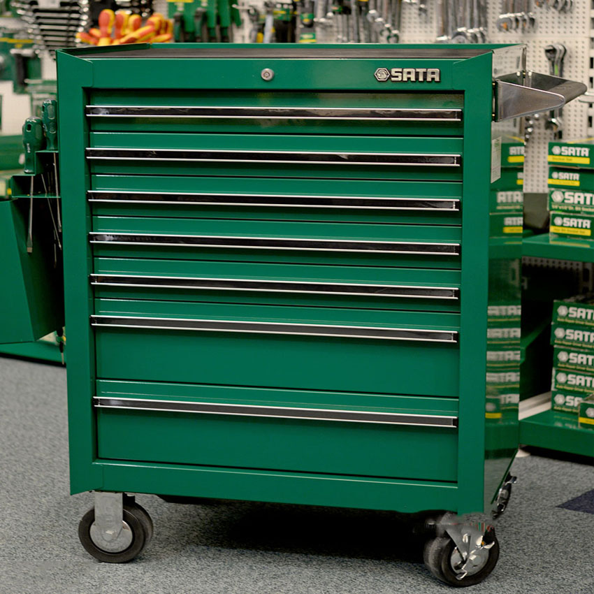 Xe đẩy đựng dụng cụ 7 ngăn SATA A95107, tủ đồ nghề, kệ đồ nghề, xe đẩy, chuyên dùng để đựng dụng cụ cầm tay, thiết bị đồ nghề cơ khi trong các tiệm sữa chữa ô tô, xe may và các nhà máy xi nghiệp để tránh thất thoát các thiết bị và bảo quản thiết bị an toàn, NPRO chuyên cung cấp tất cả các loại bàn gia công cơ khí ( bàn nguội cơ khí), xe đẩy đồ nghề, tủ đồ nghề, tủ dụng cụ 2 cánh.